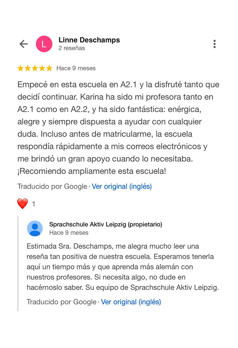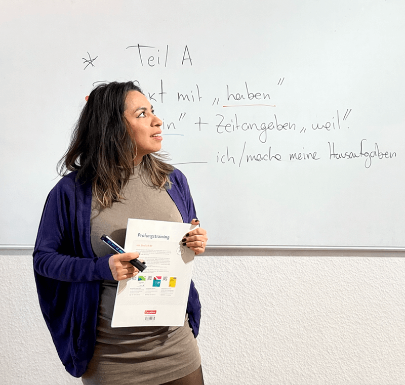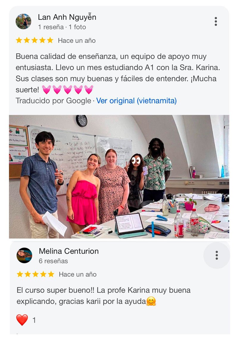 Soy Karina Pérez, maestra de alemán (Daz) y de español desde hace 10 años en Leipzig. Ofrezco cursos intensivos en grupos íntimos de máximo 5 personas, diseñados para quienes buscan un aprendizaje real, con acompañamiento constante.