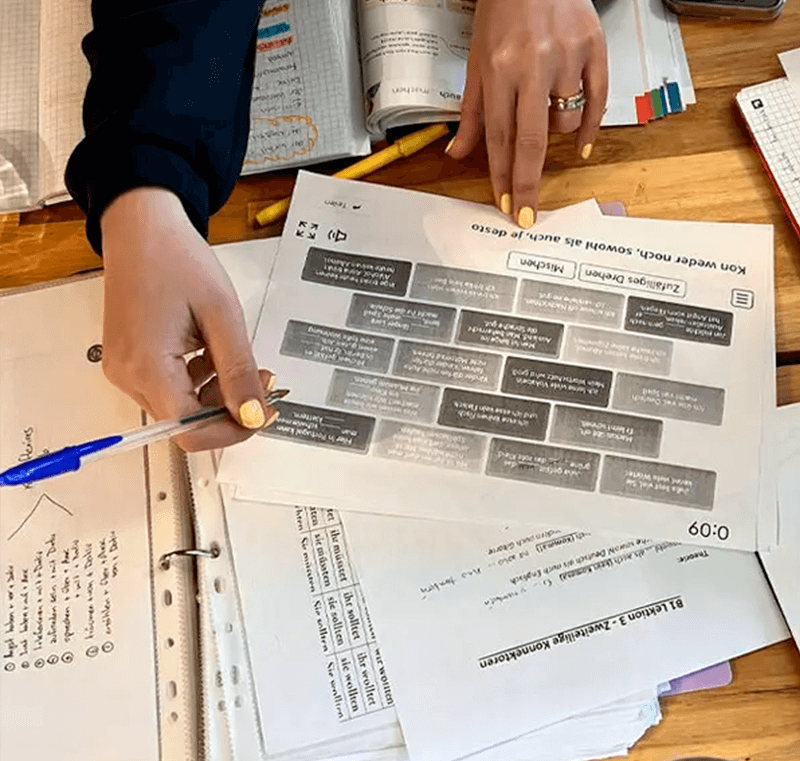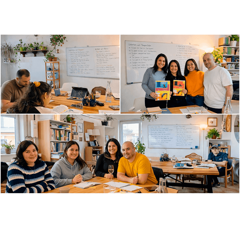 Aquí no se trata de “hablar alemán en 30 días”, sino de aprender con seguridad, paso a paso, superando miedos y ganando confianza en cada clase.